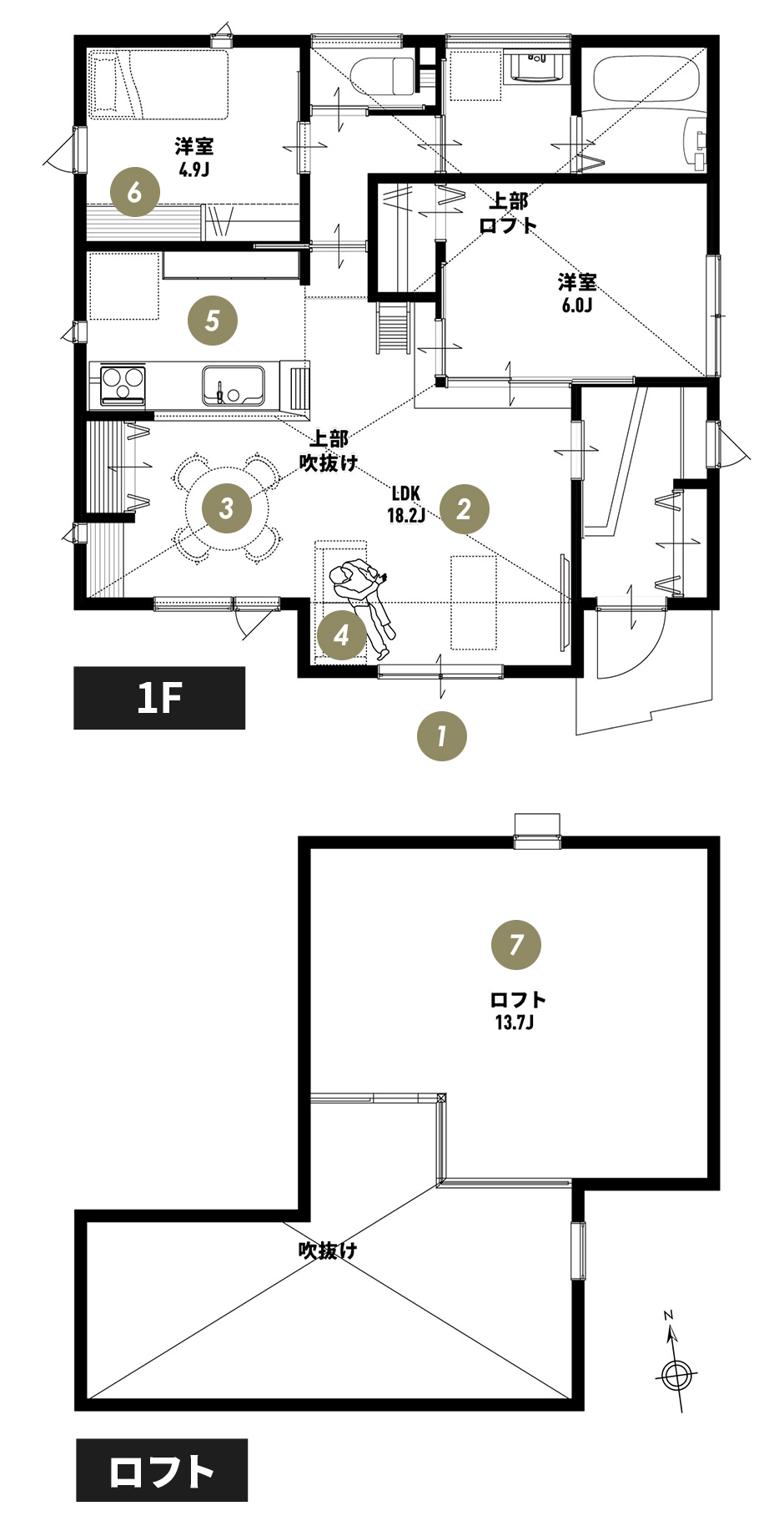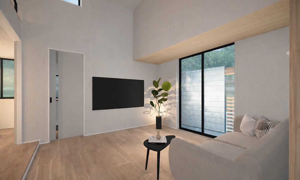 平屋ならではの勾配天井とロフトが生み出す立体感が、暮らしをゆるやかにつなぐモデルハウス。