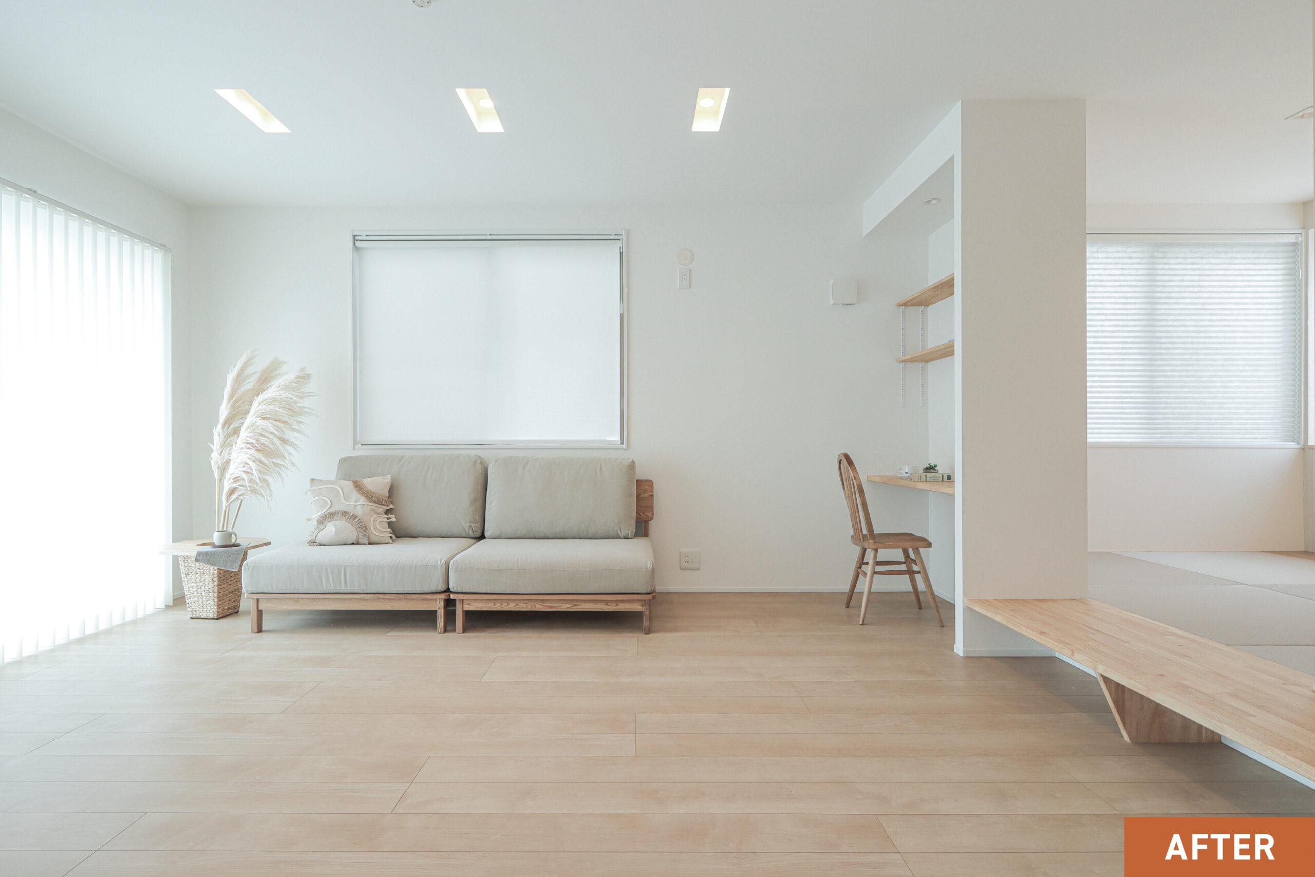 和の落ち着きと北欧の軽やかさを掛け合わせた、木の温もりを感じるジャパンディインテリアに仕上げました。